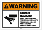 Warning Crush Hazard Keep Hands Clear Follow Lock-out Procedures Sticker