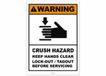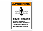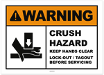 Warning Crush Hazard Keep Hands Clear Lock-out / Tagout Sticker