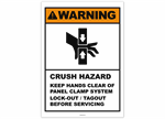 Warning Crush Hazard Keep Hands Clear of Panel Clamp System Sticker