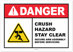 Danger Crush Hazard Stay Clear Secure Arm Assembly Before Servicing Sticker