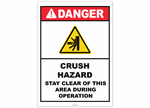 Danger Crush Hazard Stay Clear of this Area During Operation Sticker