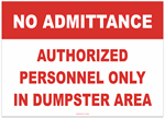 No Admittance Authorized Personnel Only in Dumper Area Sticker