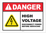 Danger High Voltage Disconnect Power Before Servicing Sticker