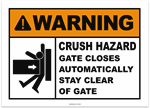 Warning Crush Hazard Stay Clear of Gate Sticker