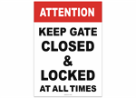Attention Keep Gate Closed & Locked At All Times Sticker