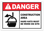 Danger Construction Area Hard Hats Must Be Worn on Site Sign