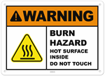 Warning Burn Hazard Hot Surface Inside Do Not Touch Sign