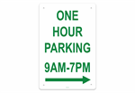 One Hour Parking 9AM-7PM Right Sign