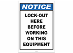 Notice Lock-out Here Before Working on this Equipment Sticker
