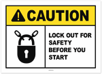 Caution This Machine Must Be Locked Out Before Work is Carried Out Sticker