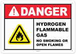 Danger Hydrogen Flammable Gas No Smoking No Open Flames Sign