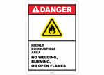 Danger Highly Combustible Area No Welding, Burning, or Open Flames Sticker