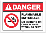 Danger Flammable Materials No Smoking or Open Flames Within 50 Feet Sticker