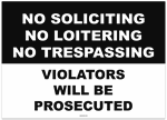 Notice So Solicitation or Distribution of Materials Allowed on Property Sticker