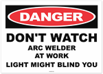 Danger Don't Watch Arc Welder at Work Light Might Blind You Sticker