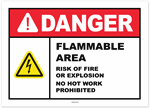 Danger Flammable Area Risk of Fire or Explosion No Hot Work Prohibited Sticker